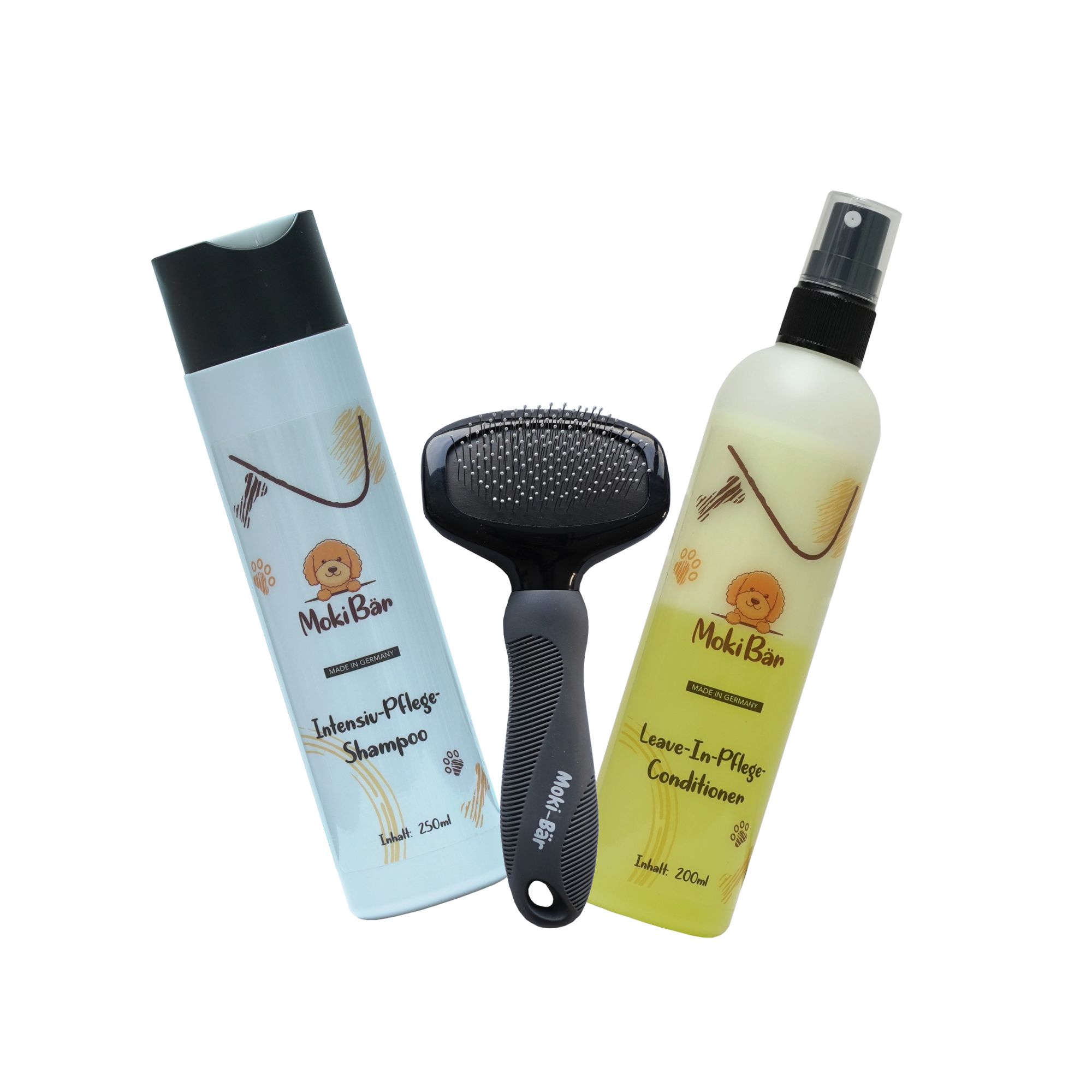 Alle Fellpflege-Produkte, die du täglich bzw. wöchentlich benötigst um einen frischen Teddy Look sicherzustellen. Hier sind alle Pflegeprodukte sowie die essentiellen Bürsten mit drin. Was hier fehlt sind die Hundescheren.